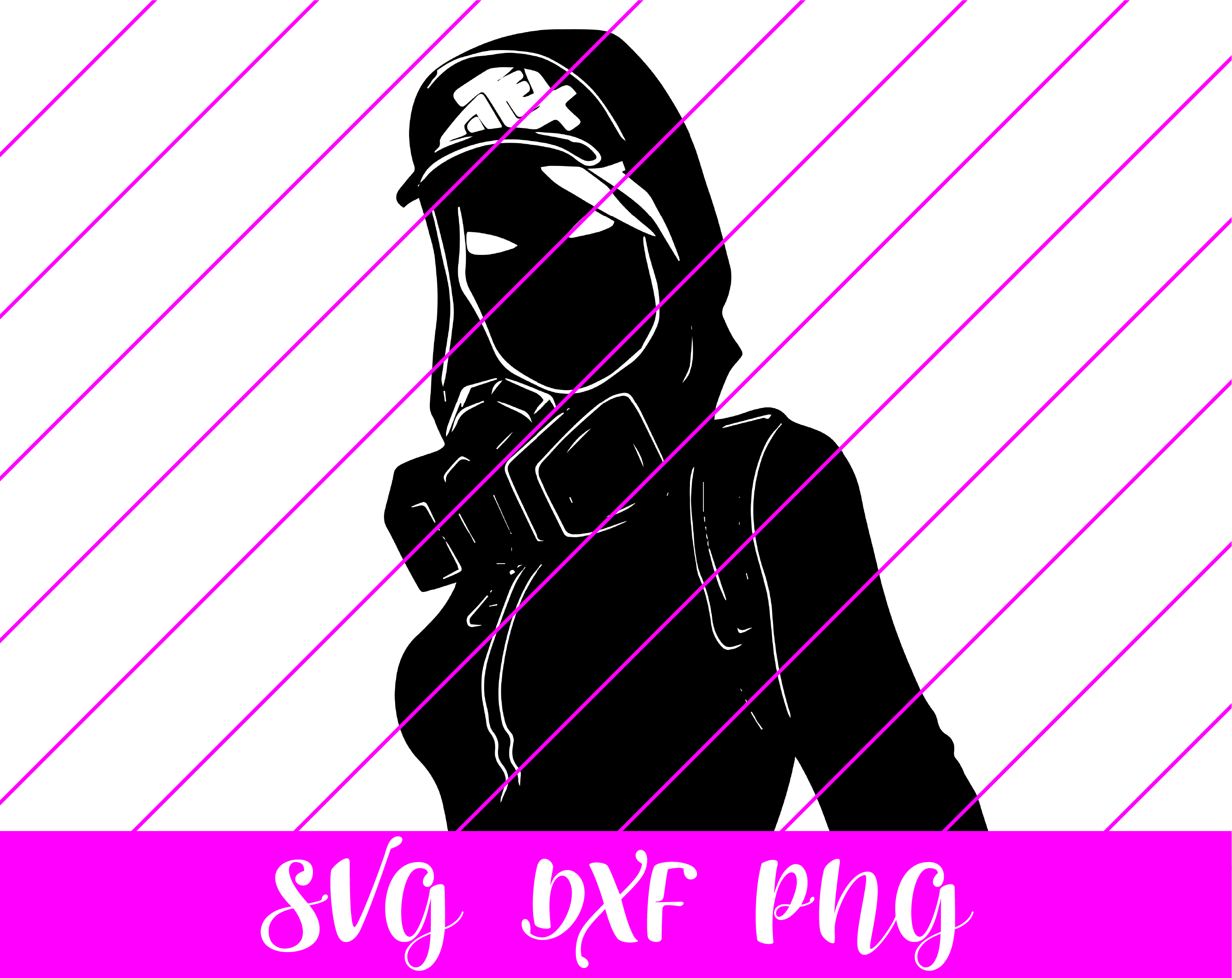 Below you will see a preview of what the Fortnite Teknique svg will look like. It is a black and transparent svg file that can be used with svg compatible cutting machines, such as the cricut and silhouette die-cutting machines. The SVG File is a pattern that your machine can use to cut various materials such as vinyl, paper, and other materials used for scrap-booking and other arts and crafts.