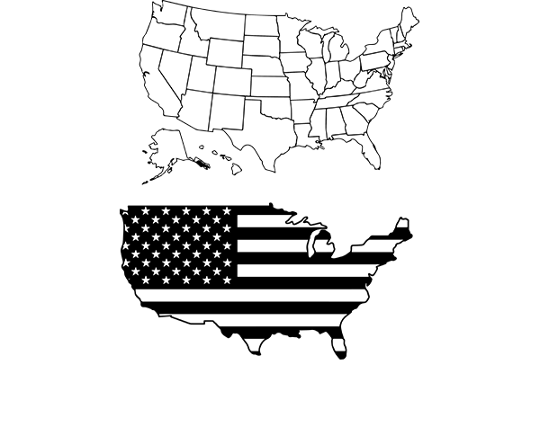 Below you will see a preview of what the US Map svg will look like. It is a black and transparent svg file that can be used with svg compatible cutting machines, such as the cricut and silhouette die-cutting machines. The SVG File is a pattern that your machine can use to cut various materials such as vinyl, paper, and other materials used for scrap-booking and other arts and crafts. This file is an SVG vector file that is meant to be used with a die cutting machine such as the Silhouette or Cricut Machine.